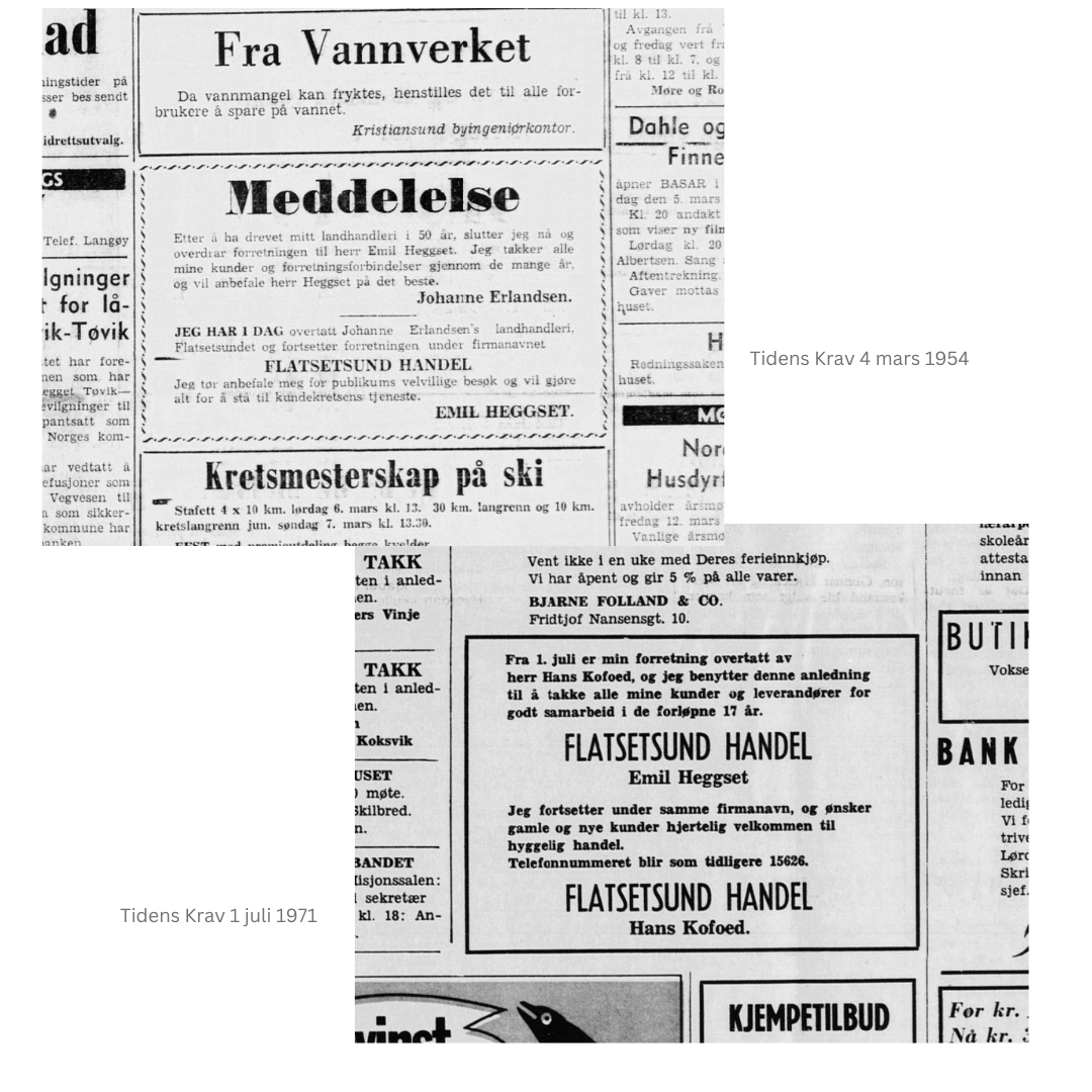 Etablert i 1954, gjennom overtakelse av eksisterende landhandel. Butikk var stengt ca 1988-1990 – hvorpå ny driver videreførte driften i noen år. I 1994 ble lokalene avertert til salgs, og så solgt og ombygd til enebolig.