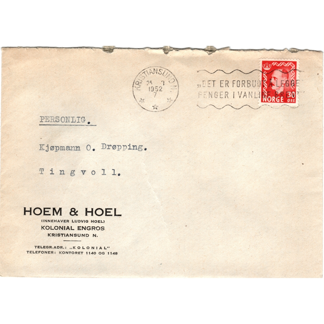 Etablert i 1914, da de overtok aktiviteten fra A. Ervigs Eftgr. Fra 1924 bedrev selskapet kun engroshandel av alskens kolonialvarer. Hadde brygge på vestre del av Storkaia før krigen. Ny bygård ble sammen med “Børsen” og “Kristiansund Handelstands Forening” i 1954 på ca samme tomt som opprinnelig brygge. Hoem & Hoem hadde 1. og 2. etasje. La ned engrosvirksomheten fom. 1/1/57. Bildene av kaffetårnet og kaffetårnet tilhører Nordmøre Museum.