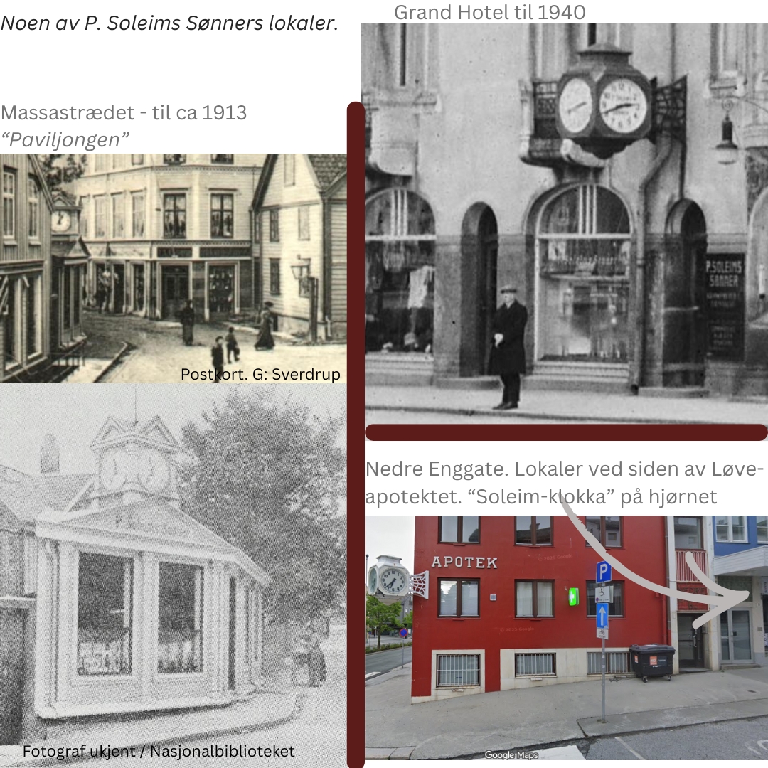 P. Soleim startet i ung alder som lærling bl.a. hos mestrene Endre Aasen og Bjørnaas. Han startet for seg selv i 1864 i Torvgaten, Kristiansund. Fra 1885 omfattet den også briller. Senere flyttet han til paviljongen i Massastredet, så til Kaffistovas gård i Torggaten, og så til Grand Hotel hvor han ble til brannen i 1940. Fra da til 1950 ble det flere ganger flyttesjau fram til de flyttet til slakter Røsbergs nybygg i Nedre Enggate 6 (Torvgaten).